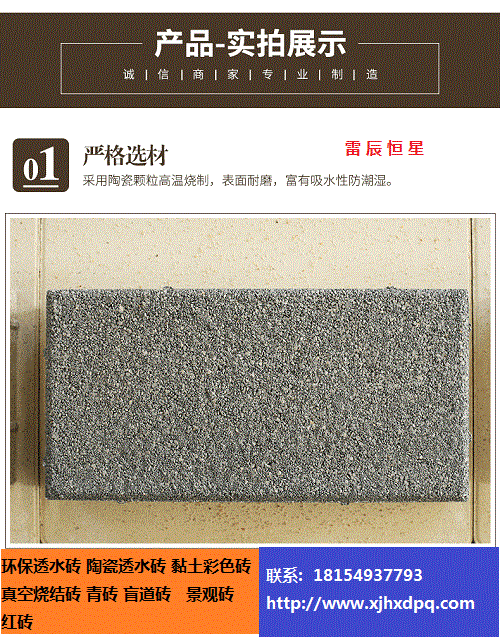 新疆雷辰恒星有限公司,成立于2015年,是*從事海綿城市建設的企業(yè)。公司擁有國內(nèi)*的透水系列產(chǎn)品生產(chǎn)設備,透水產(chǎn)品膠結料生產(chǎn)車間、透水磚生產(chǎn)車間及承接海綿城市建設工程的全套施工工具、設備。產(chǎn)品主要有:彩色透水磚:透水磚與傳統(tǒng)的彩色路面磚不同,它呈多孔、蜂窩狀結構,本身有自然積存、自然滲透、自然凈化功能。它能有效的解決城市熱島效應、除塵降噪,是海綿城市建設不可缺少的路面材料。聯(lián)系熱線18154927793李經(jīng)理或者0991-6867420.