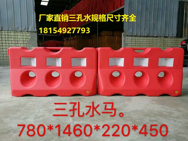 完全:三孔水馬用進口PE制造,盛水后更具緩沖彈性,能吸收強大的沖力有效地減少對汽車、路人及圍欄內工作人員的傷害。顏色鮮明,可根據道路要求選擇不同顏色,清楚明確地指示行車路線。串連使用,整體承受力更強。